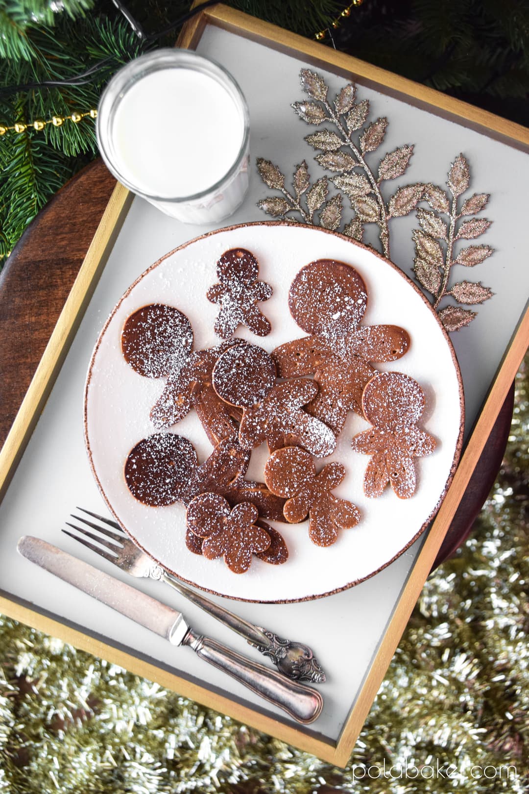 - To make it more festive, pour the batter into a squeeze bottle and create gingerbread man shapes on a pan.