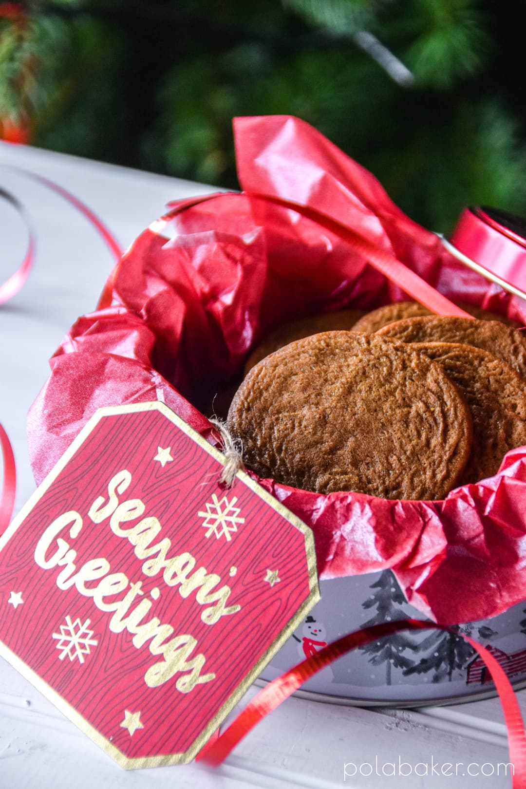 Sometimes simple things can make a very nice gift. Like these gingersnaps. Just put them in a box and tie with a festive ribbon to make a little homemade gift for someone.